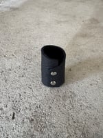 This handmade ring is made out of geniune leather and a high quality brass rivet made in germany. The ring is available in 2 different sizes