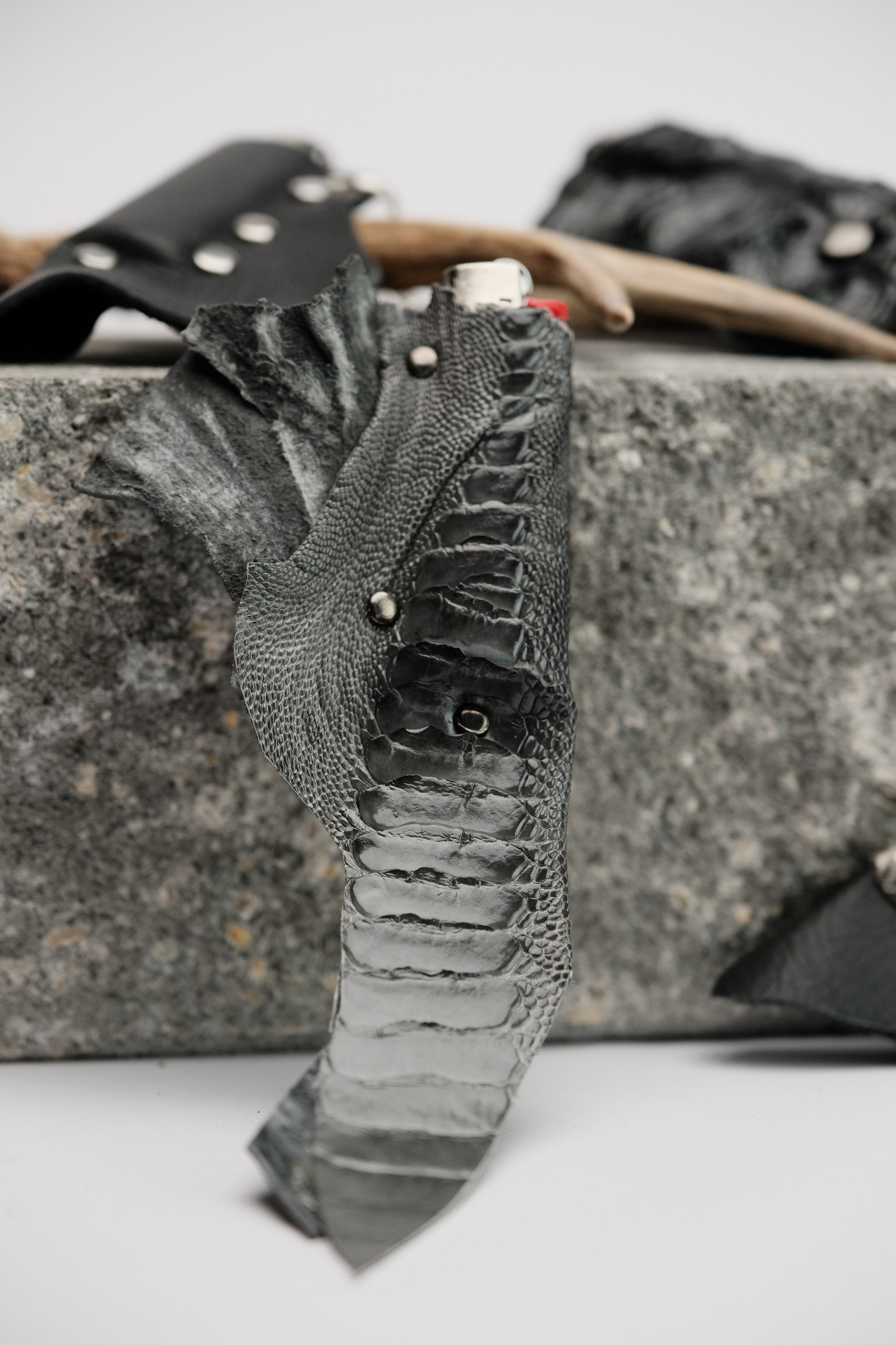 1of1 Handmade ostrich leg leather lightercase.